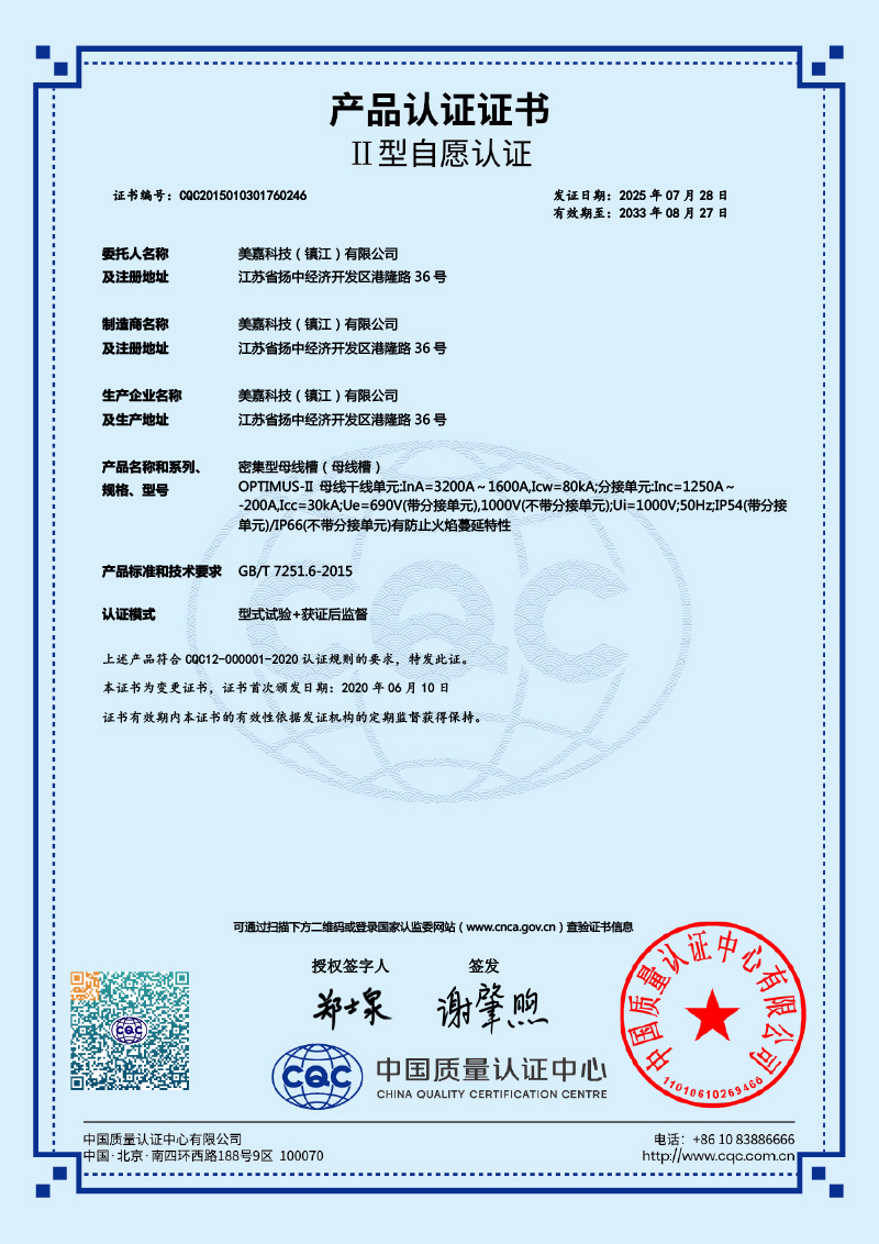 当前位置:首页 > 相册信息 > 资质荣誉 > CQC认证 > OPTIMUS II密集型铜母线3200A-1600A