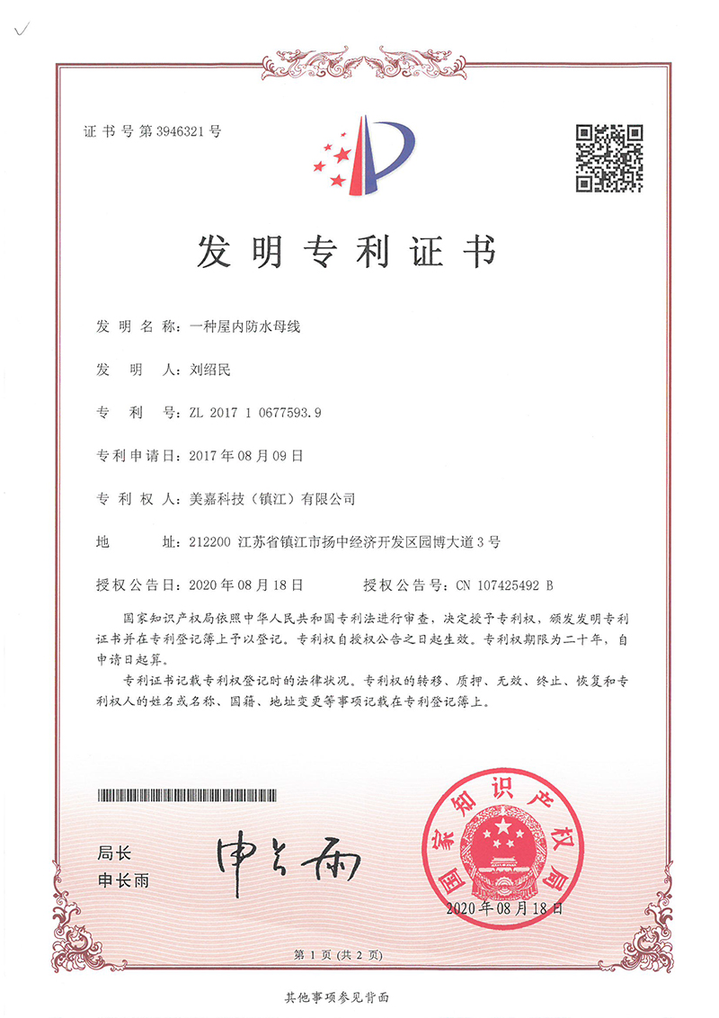 当前位置:首页 > 相册信息 > 资质荣誉 > 专利证书 > 一种屋内防水母线