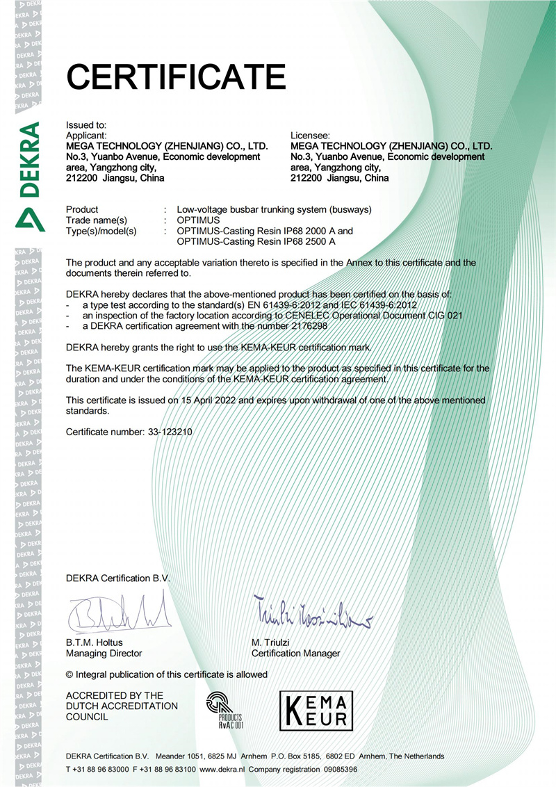 当前位置:首页 > 相册信息 > 资质荣誉 > Kema Keur 证书 > 火山岩浇注铝母线 2000A-2500A IP68