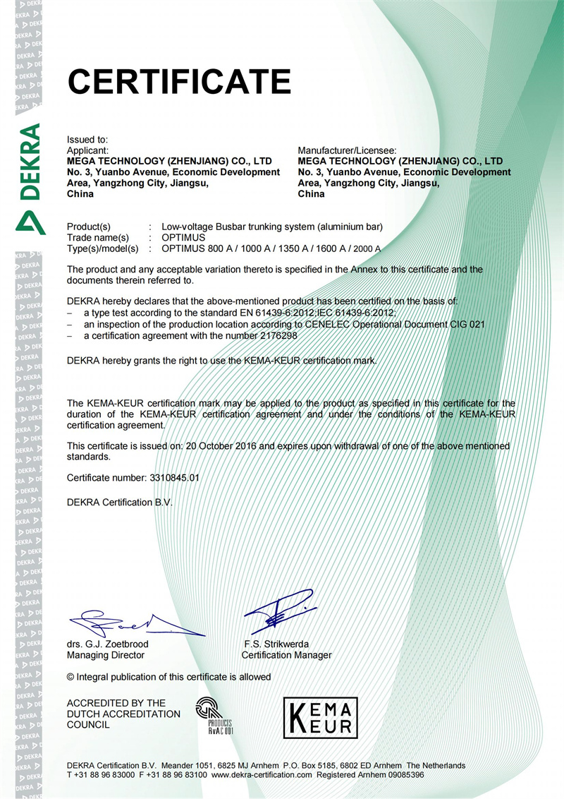当前位置:首页 > 相册信息 > 资质荣誉 > Kema Keur 证书 > 铝母线 800A-2000A